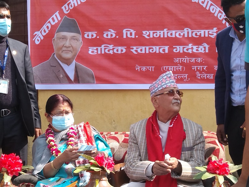 अध्यक्ष ओलीले आफ्नै सरकारका पालामा देशभर खरका छानामुक्त अभियान ल्याएको पनि बताए । सो क्रममा दैलेखमा पनि धेरै नागरिकका घर खरका छानामुक्त भएर जस्तापाता लगाएको उनको भनाइ थियो । उनले त्यसबेला बाँकी रहेका घरहरूमा जस्तापाता नपुगेको भए एमालेले पहल गर्ने प्रतिबद्धता पनि जनाए । उनले दैलेखमा पेट्रोलियम पदार्थ रहेको भन्ने पुष्टी भएको र यहाँको मात्र नभई राष्ट्रको विकासमा टेवा पुग्ने बताए । दैलेखमा रहेका धार्मिक स्थलको विकास गर्दै पर्यटनका माध्यमबाट आम्दानी लिन सबै स्थानीय तह लाग्नुपर्ने बताए। अध्यक्ष ओलीले दुल्लुमा एक हजार वर्षअघि नै नेपालको राजधानी रहेको इतिहासले पुष्टि गरेको दाबी समेत गरे ।