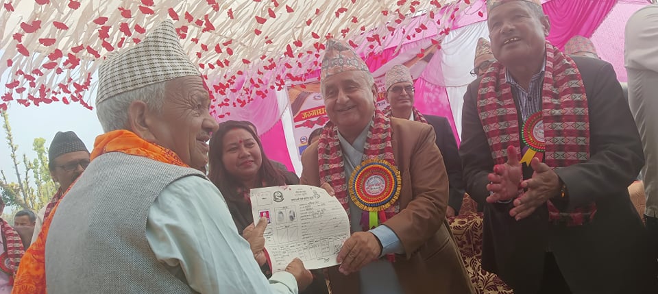 सुर्खेत । राष्ट्रिय भूमी आयोग सुर्खेतले यहाँका दुई सरकारी कार्यालयसहित १३८ परिवारलाई जग्गाधनी पुर्जा वितरण गरेको छ । आयोगका केन्द्रीय अध्यक्ष केशव निरौलाको उपस्थितिमा आज भेरीगंगा नगरपालिकाका १०२ र गुर्भाकोट नगरपालिकाका ३४ घरपरिवारलाई पुर्जा वितरण गरिएको हो ।