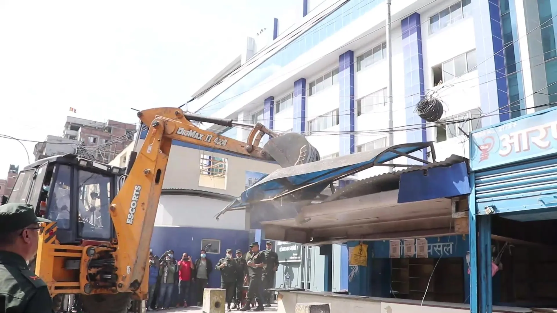 महानगरले संरचना हटाउन सुरु गरेपछि व्यापारीहरूले सामानहरू निकालेका थिए ।