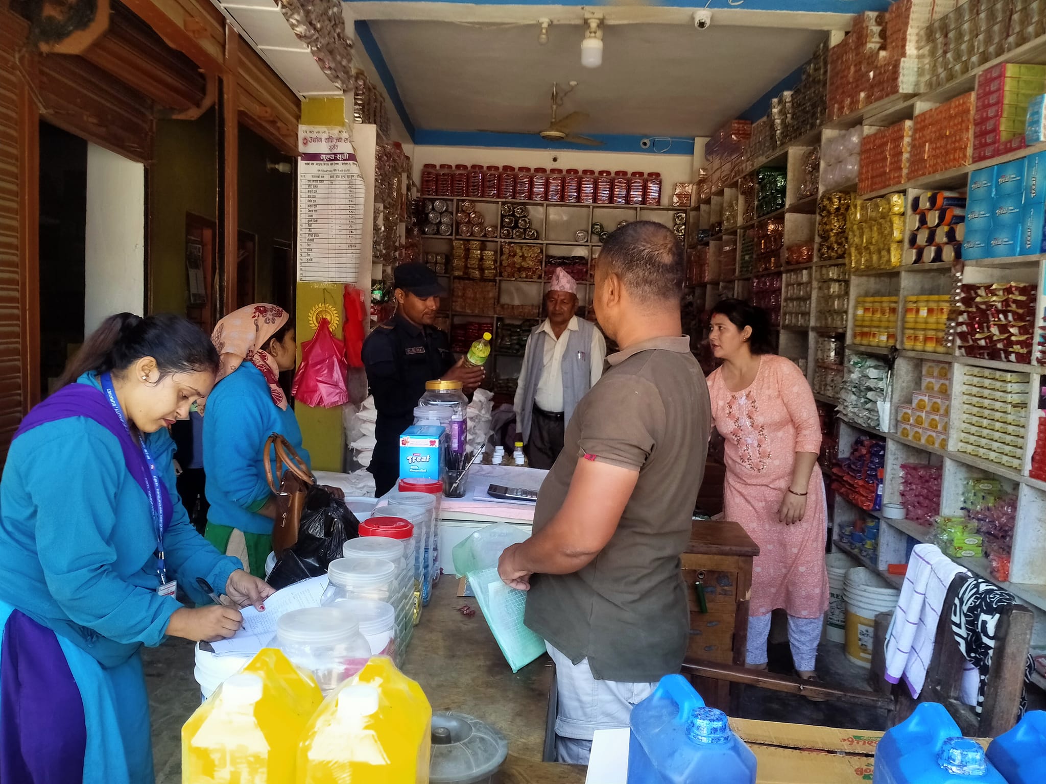 बिनोद घिमिरे सुर्खेत । भेरीगंगा नगरपालिका वडा नम्वर १० र १२ को छिन्चु बजारमा चाडपर्व लक्षीत बजार अनुगमन गरिएको छ । तिहार नजिकिएसँगै शुक्रवार खाद्यान्न तथा दैनिक उपभोग्य वस्तुमा मूल्य वृद्धि, म्याद नाघेका वस्तुको बिक्री वितरण भए नभएको, मूल्यमा एकरुपता ल्याउनको लागि भेरीगंगा नगरपालिका र उपभोक्ता संरक्षण हित संरक्षण समितिद्धारा सर्वसाधारणको स्वास्थ्यलाई मध्यनजर गरी अनुगमन समिति गठन गरी बजारका केही पसलहरु अनुगमन गरीएको हो । अनुगमनको तेस्रो दिन शुक्रवार छिन्चु बजारमा अनुगमन गरिएको हो । बजारमा हुने गरेको अखाद्य बस्तु म्याद गुज्रिएका बस्तुलाई बिक्री बितरण नर्गन आह्वान गर्दै उपप्रमुख तथा उपभोक्ता हित संरक्षण समितिको संयोजक धनसरा बोहराले सबै उपभोक्तालाई सचेत हुनुपर्ने बताईन् । नगरपालिकाले मेडिकल, फार्मेसी, एग्रोभेट, खाद्यान्न, माछामासू, तरकारी, नास्ता पसल, फलफूल लगायतका थोक तथा खुद्रा पसलमा अनुगमन गरेको हो । चाडपर्वको समयमा व्यापारीहरूले जथाभावी मूल्य लिने, म्याद गुज्रिएका अखाद्य वस्तुलाई बेच्ने लगायतका समस्या देखिने गरेकाले तिहार आउन केही दिन बाँकी छँदै नगरपालिकाले अनुगमनलाई सक्रिय रुपमा अगाडि बढाएको हो । एग्रोभेटमा अनुगमन गर्दा म्याद सकिएका बिउ बिजन, बिषादी, पशुपंक्षीको औषधीहरु ठूलो मात्रामा बरामद गरिएको छ । एग्रोभेट संचालकलाई आगामी दिनमा म्याद सकिएका बीउबिजन तथा औषधीजन्य सामाग्री विक्री वितरण नगर्न आह्वान गरिएको छ ।