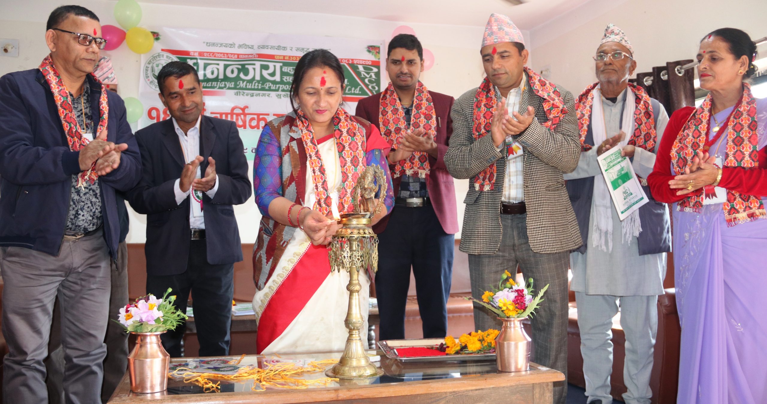 सुर्खेत । धनन्जय बहुउद्देशीय सहरकारी संस्था लिमिटेड वीरेन्द्रनगरको १६ औँ बार्षीक साधारणसभा सम्पन्न भएको छ । शनीबार वीरेन्द्रनगरमा सम्पन्न भएको साधारणसभामा संस्थाले आर्थिक वर्ष २०७८÷०८९ मा गरेका कार्यक्रमहरु तथा प्रगती विवरण प्रस्तुत गरिएको थियो । संस्थाले स्थापना भएदेखी गत आर्थिक वर्ष सम्ममा ४ करोड १९ लाख ५२ हजार ६ सय ६३ रुपैँया बराबरको कारोबारो गरेको संस्थाका कोषाध्यक्ष दयाराम पंगालीले प्रस्तुत गरेको प्रगति विवरणमा उल्लेख गरीएको छ । संस्थाले समग्रमा कारोबार १३ प्रतिशतले वृद्धी गर्न सफल भएको छ । संस्थाले आर्थिक वर्ष २०७९÷०८० मा दिगो विकासको लक्ष्य प्राप्तीमा सघाउ पुग्ने गरी नेपाल सरकारको सुखी नेपाली समृद्ध नेपालको नारालाई टेवा पु¥याउने गरी कार्यक्रमहरु संचालन गर्ने, सामाजिक सुरक्षा कार्यक्रम अन्तरगत जेष्ठ नागरीक सम्मान कार्यक्रम, हौसला कार्यक्रम, भरोसा तथा उत्प्रेरणा कार्यक्रम, विपत् व्यवस्थापन कार्यक्रम, कृषी पशु व्यावसाय प्रवर्दन योजना, सुशासन तथा संस्थागत विकास कार्यक्रम जस्ता कार्यक्रमहरु संचालन गर्ने निती लिएको संस्थाका अध्यक्ष भलाराम पंगालीले जानकारी दिए ।