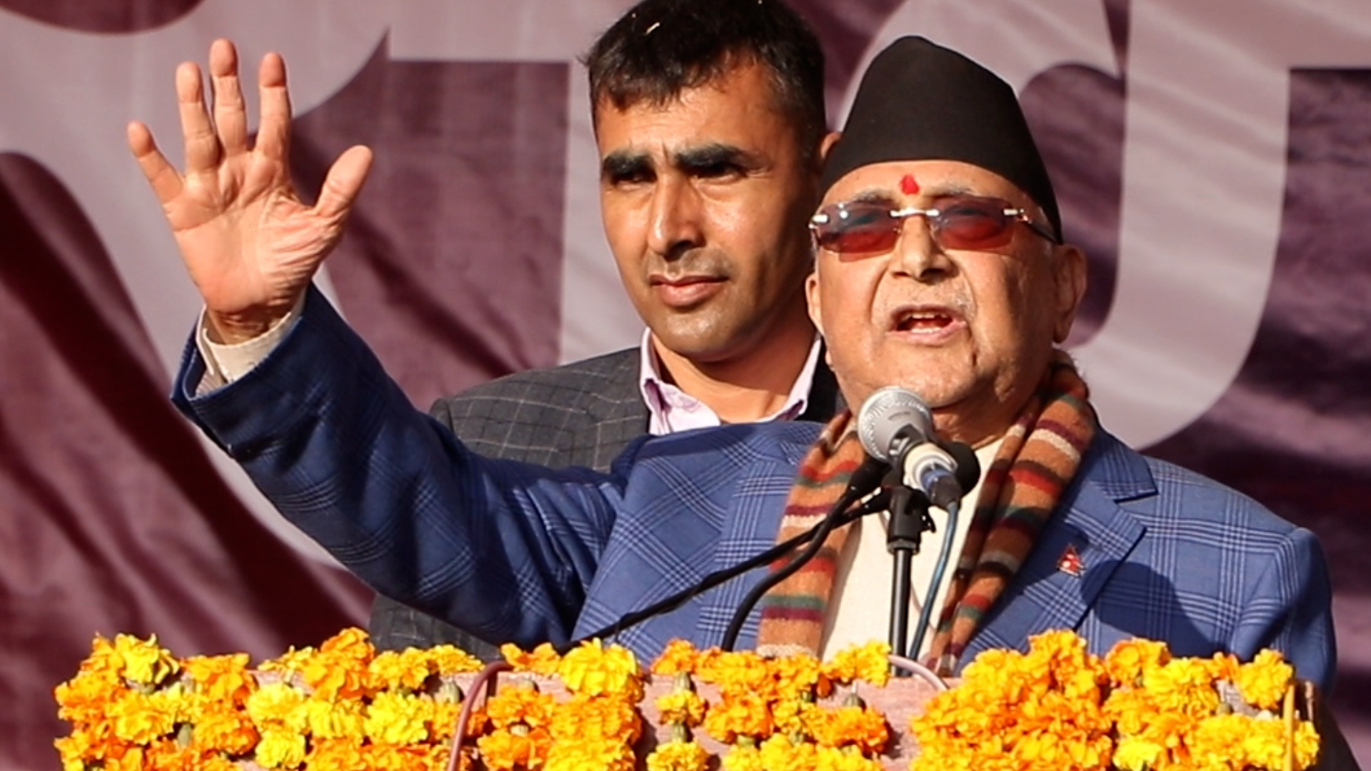 एमाले बर्चसो देखाई घमण्ड नगर्ने र जनताको सेवा, विकासलाई अगाडी बढाउने, इमान्दारका साथ भ्रष्टचारको अन्त्य, सुशासन दिने तथा समृद्ध नेपाल सुखी नेपालीको राष्ट्रिय आकांक्षा पुरा गर्ने पार्टी भएको दाबी गरेका छन् । देश बचाउने, देशको स्वाभिमान जोगाउने नेकपा एमाले पार्टीलाई कमजोर बनाउन घेराबन्धी गर्न तथा हराउँनको लागि गठबन्धन गरेको उनले जिकिर गरेका छन् । सय वटा स्यालले पनि एउटा सिहँलाई घेराबन्दी गर्न नसक्ने बताउँदै सानातिना टालाटुली फुटेका खपेटा खपेटी जोडेर कुनै राष्ट्र निर्माण नहुने दाबी गरे । पुष्पकमल दाहाल प्रचण्डले आफ्नो पार्टी तेस्रो शक्ति हुन्छ तथा आफु जता लाग्यो त्यतै सरकार बन्छ भन्ने कुरा भ्रममा रहेको बताएका छन् । प्रचण्ड बिचौलिया भएर खाने मान्छे हुन् अव उनको बिचौलिया भएर खाने दिन मंसिर ४ गतेदेखि सकिन्छ ।