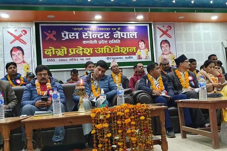 सुर्खेत । प्रेस सेन्टर नेपाल कर्णाली प्रदशको अध्यक्षमा प्रतीक इच्छुक शर्मा निर्वाचित भएका छन्। मंगलबार सम्पन्न कर्णाली प्रदेशको दोस्रो अधिवेशनले शर्मालाई सर्वसम्मत अध्यक्षमा निर्वाचित गरेको हो।