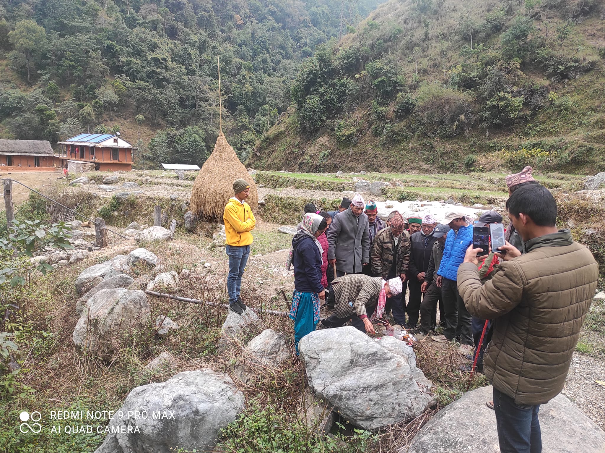 दैलेख । गुराँस गाउँपालिका वडा नम्वर ६ र ७ जोड्ने पाल्ते खोलामा झोलुङ्गे पुल निर्माणका लागी सिलन्यास गरिएको छ । करिब ४५ लाख लागतमा गाउँपालिकाको चालु आर्थिक वर्षको बजेटबाट पुल निर्माण गर्न लागीएको गुराँस गाउँपालिकाका अध्यक्ष खेमराज वलीले जानकारी दिनुभयो । पुल निर्माण कार्य समपन्न भए पश्चात गुराँस गाउँपालिकाका वडा नम्वर ६,७ र ८ का नागरिकहरु प्रत्यक्ष रुपमा लाभान्वीत हुने अध्यक्ष वलीको भनाई रहेको छ । पुल नहुँदा वर्षातको समयमा वडा नम्वर ६,७ र ८ का नागरिकहरुलाई आवत जावत गर्न समस्या भईरहको गुनासो आएपछी पुल निर्माण कार्य थालिएको अध्यक्ष वलीले जानकारी दिनुभयो । पुल बन्ने भएपछी स्थानिय नागरिहरु हर्षीत भएका छन् ।