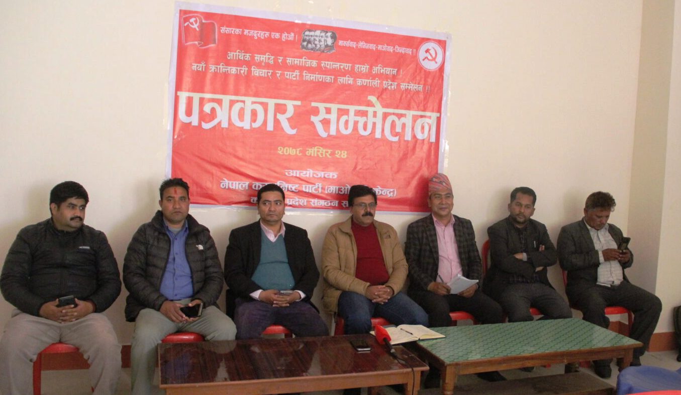 सुर्खेत । आज देखि सुरु हुने माओवादी केन्द्र कर्णालीको प्रथम सम्मेलनको सबै तयारी पुरा भएको छ । सम्मेलको पूर्वसन्धामा पत्रकार सम्मेलन गर्दै माओवादीले अधिवेशन सबै तयारी पुरा भएको जनाएको हो । माओवादी केन्द्रको प्रथम कर्णाली प्रदेश सम्मेलन शनिबारदेखि वीरेन्द्रनगरको सिटी हलमा हुँदैछ ।